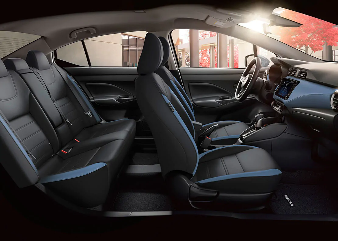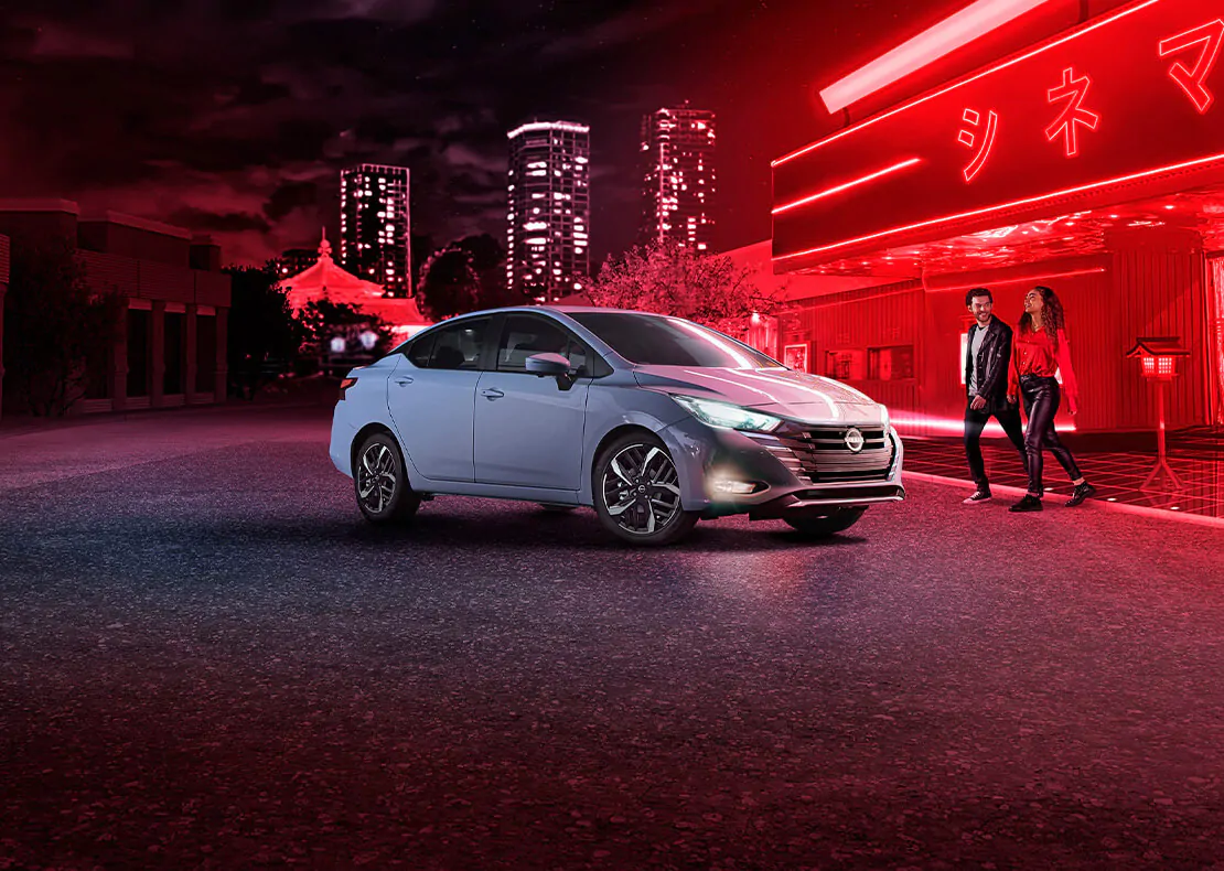 O Novo Nissan Versa 2026 eleva o conceito de sedan com um design que equilibra ousadia e sofisticação. Inspirado na linguagem Nissan Emotional Geometry, suas formas dinâmicas são realçadas pela marcante grade frontal V-Motion e pelos faróis Full LED. As rodas de liga leve diamantadas de até 17” e o efeito de teto flutuante completam um visual que impressiona. Por dentro, o acabamento premium e o amplo espaço interno criam um ambiente de conforto superior, pensado em cada detalhe para superar suas expectativas.